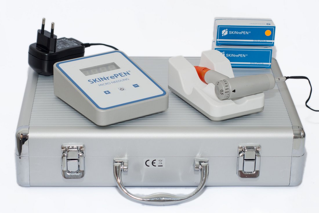 - Steuereinheit - Handteil - Verbindungskabel - 4 Nadelmodule (2x9er / 2x5er) - Bedienungsanleitung - Netzteil - handlichen Transportkoffer