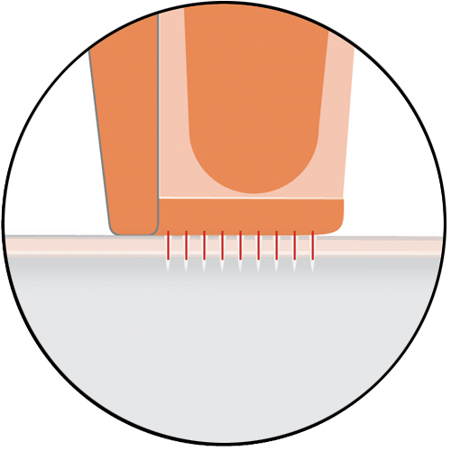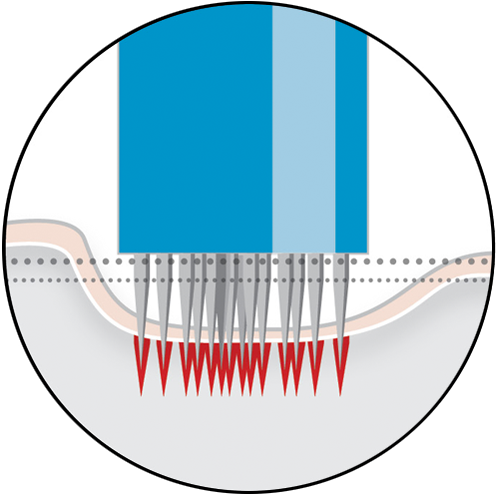 Durch die Behandlung wird die Epidermis perforiert. Diese Mikro-Wunden schließen sich nach kürzester Zeit wieder. Dies minimiert das Risiko einer Infektion und setzt die Wundheilungskaskade in Gang.